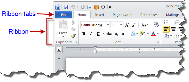 The line of icons across the space above the ribbon is part of the Quick Access Toolbar.